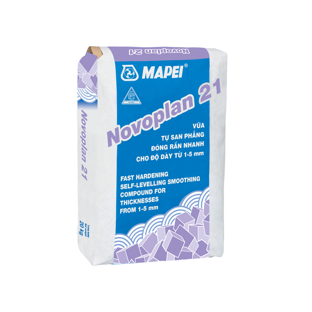 Mapei Novoplan 21vữa tự san phẳng đông kết nhanh, dùng cho độ dày từ 1-5 mm. Sản phẩm này có cường độ nén, cường độ uốn cao, khả năng chịu mài mòn, va đập tốt. Vữa tự san phẳng Novoplan 21 thường dùng để làm phẳng cho sàn bê tông, sàn gạch, đá cũ, sàn gốc thạch cao khan, sàn cách nhiệt,…