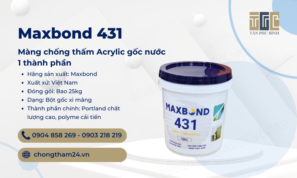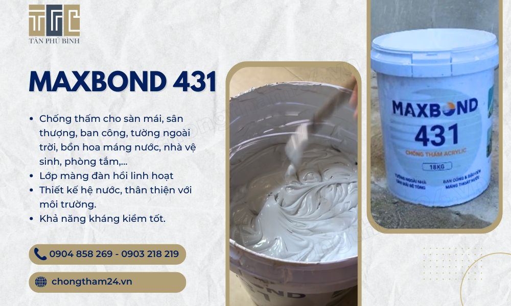 Tân Phú Bình là địa chỉ uy tín cung cấp sản phẩm chống thấm Maxbond 431 chính hãng, giá cả tốt nhất thị trường. Với 20 năm kinh nghiệm trong ngành, chúng tôi luôn mang đến cho khách hàng những sản phẩm chất lượng nhất, những giải pháp chống thấm hiệu quả tối ưu nhất, chọn mua vật liệu chống thấm tại Tân Phú Bình là bảo chứng cho chất lượng và sự an tâm cho mọi công trình.